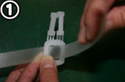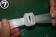 ※写真1~3の順番に片側を留めて頂き、次に写真4~7の順番にもう一方を留めてください。 上図を参考にしても留め方が分からない場合は、ドライバーにお尋ねください。